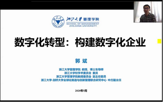 郭斌教授作为主讲嘉宾,分享主题是《数字化转型:构建数字化企业》。由于疫情原因,本次论坛采有钉钉群直播方式,2019级MBA学员、历届MBA校友及部分师生共150余人参与此次论坛。