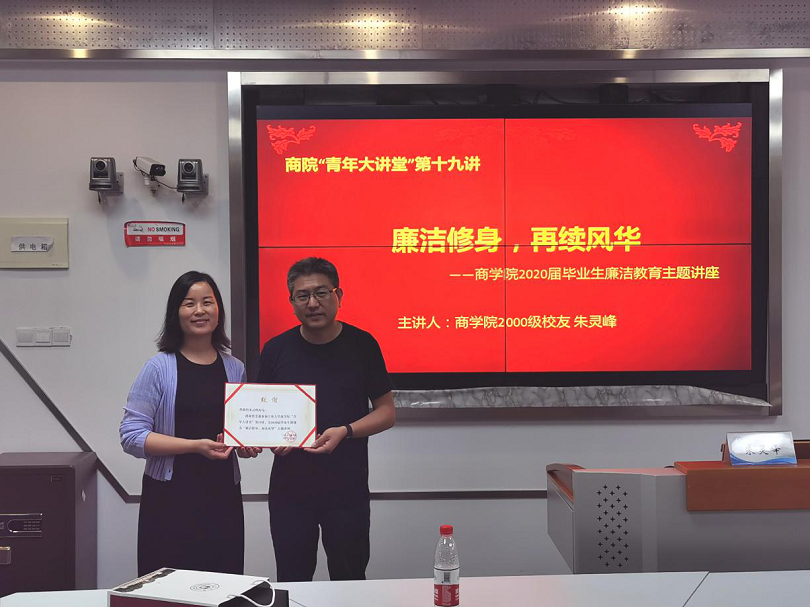 邀请2000级国贸系校友朱灵峰做客菠菜“青年大讲堂”第十九讲,在菠菜414为2020届毕业生做“廉洁修身,再续风华”主题讲座,十大菠菜网站