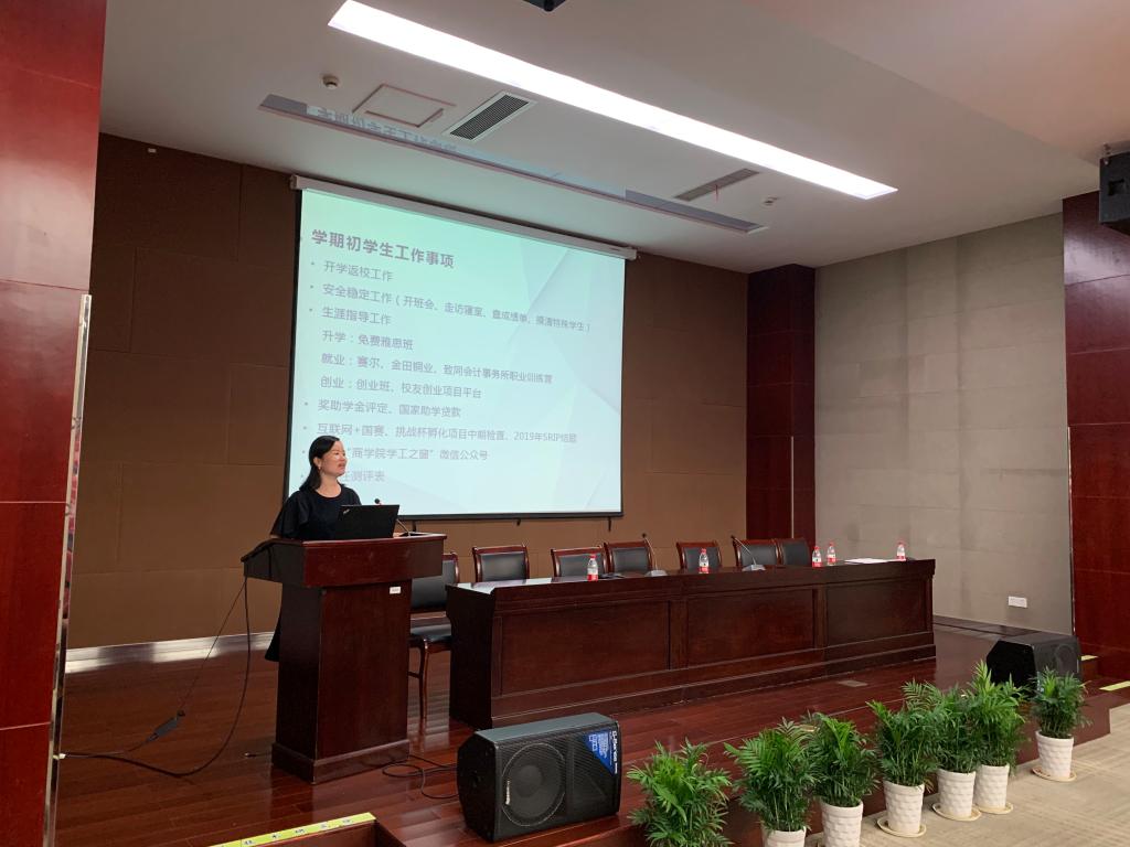的资源,在大学四年提升自己。随后,韩雯琛对开学初近期工作及本学期重点工作进行了解读。最后,学工办主任陈彬老师对新学期的开学返校工作进行了说明。