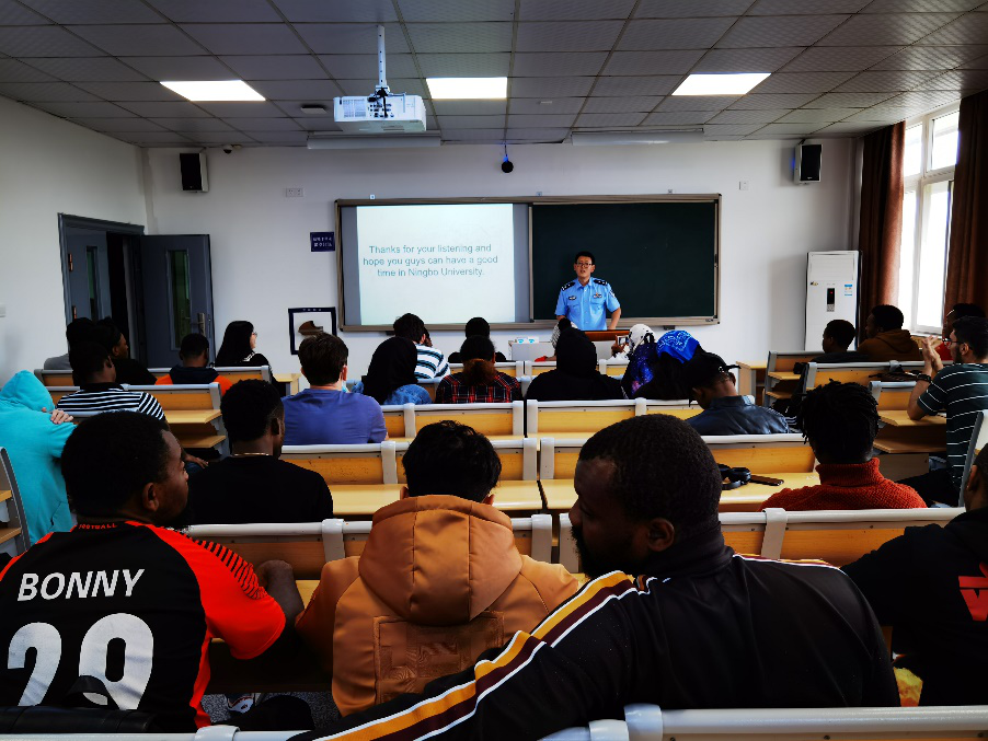 9月23日,留学生治安案例宣讲会在8号楼305教室举行,宁波市中马派出所民警王永辉来到十大菠菜网站