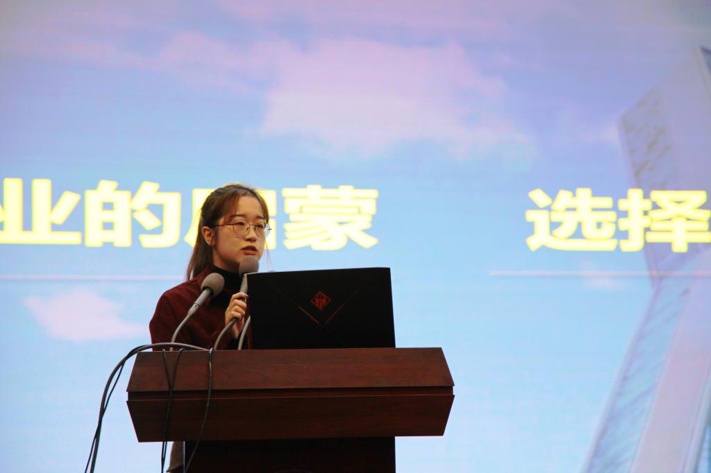 还安排了校友就业分享。来自凯越国贸集团的经理助理俞杭佳以及来自奥克斯集团人力经理的黄梦瑶,从自己当年在学校就业阶段的经历切入,与学弟学妹们分享了就业的心路历程,也结合工作后的经历,与学弟学妹们分享了职场经验。