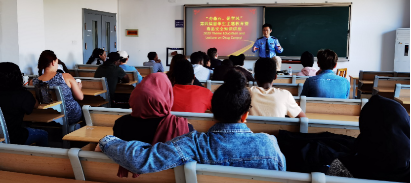 为留学生现身普及毒品安全知识。经过一个月的筹备,王警官结合毒品种类和特性、吸毒症状和危害,用大量生动丰富的案例教育警示留学生要学会辨别和远离毒品,同学们受益匪浅。