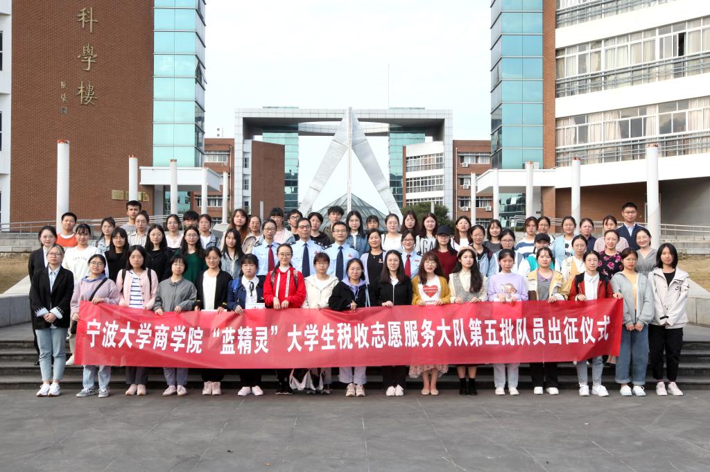 学生党建工作相关辅导员出席本次出征仪式,“蓝精灵”大学生税收志愿服务大队100余名同学参与此次活动。