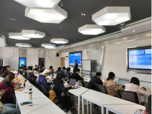 创新创业与战略学系副教授,博导,浙江大学求是青年学者,浙江省151人才工程第三层次培养人员,国家哲学社会科学创新与持续竞争力研究基地骨干成员,浙江大学全球浙商研究院核心成员。在会议中杜健老师对创新全球化的趋势与挑战、创新全球化研究的现状以及中国企业的全球化创新研究做了精彩的汇报,同学和老师们展开了研讨。