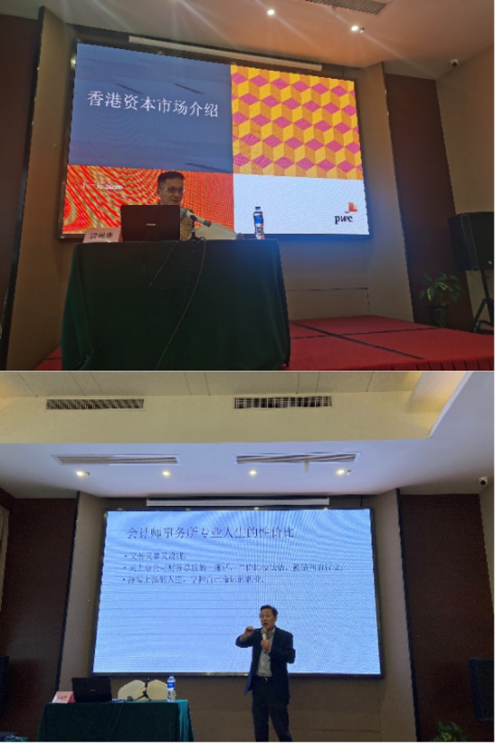 接着,四位行业专家分别以各自丰富的学识和工作经验,就“国际人才协同培养”这一主题展开了深入探讨与精彩解读。首先,谢盈经理结合实际案例,围绕着“香港资本市场优势及近况、各地资本市场比较、香港上市资格和关键问题”几个要点,详细介绍了香港资本市场。其次,罗国芳所长从自身工作经历出发,介绍了会计师事务所的服务对象、业务类别、服务产品,向同学们描述了事务所广阔的发展前景。再次,李钢董事长结合事务所的工作性质,分享了自己对人才遴选、人才培养和人才考核的看法,使同学们对事务所的人才要求有了更清楚的认识。继次,马煜东分享了财务人员应重点发展的五个能力:财务知识、税务知识、证券知识、现金流管理能力和资源整合能力,为同学们指明了学习进步方向。