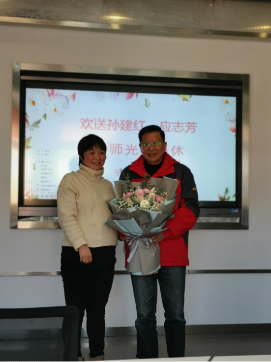分工会在11号楼414教室为孙建红、应志芳两位教师举行退休欢送仪式。欢送仪式由分工会副主席朱福建老师主持,院党委书记史宏协、院党委副书记韩雯琛、副院长陈涛、副院长盛沛锋、工商管理系和管理科学与工程系等20余名教师共同参加。