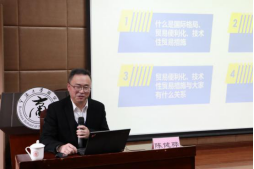 活动第二阶段是企业(高管)进校园活动,由国贸系主任杨丹萍老师主持,宁波跨境贸易便利化协会会长陈健骅应邀作了题为“新国际格局下贸易便利化、技术性贸易措施的作用与演变”的学术报告。陈会长紧紧围绕“国际新格局”、 “贸易便利化”以及“技术性贸易措施”这三大主题展开。首先在国际格局上,陈会长认为当今世界百年未有的大变局既是挑战,也是逐鹿世界的大好机会,未来中国要继续坚定地推进全球化,打造内外双循环的新格局;在贸易便利化和技术性贸易措施方面,陈会长认为技术性贸易措施工作有系统性、专业性、穿透性三大特点,而贸易便利化的工作则是将技术性贸易措施不断简化、透明化与标准化。同时预测新国际格局下,贸易便利化、技术性贸易措施作用和影响将会越来越大。最后,陈会长结合实际,就与菠菜网站-十大菠菜网站