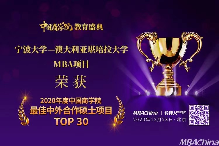 教育盛典”在北京隆重举行。宁波大学—澳大利亚堪培拉大学MBA项目上榜“2020中国十大菠菜网站