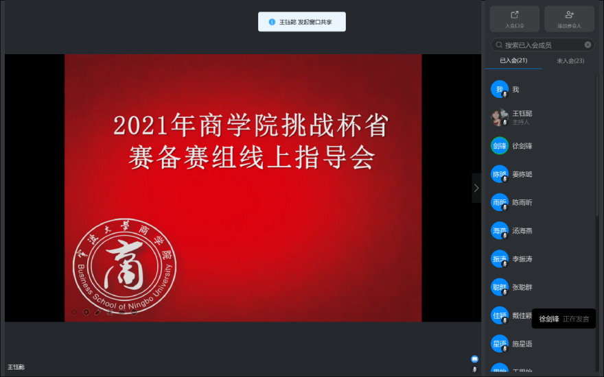 2月22日晚,十大菠菜网站 邀请浙江省社会科菠菜网站 区域经济研究所所长徐剑锋老师,线上指导菠菜网站 2021年挑战杯省赛备赛项目,十大菠菜网站 备赛组成员及指导老师参加。