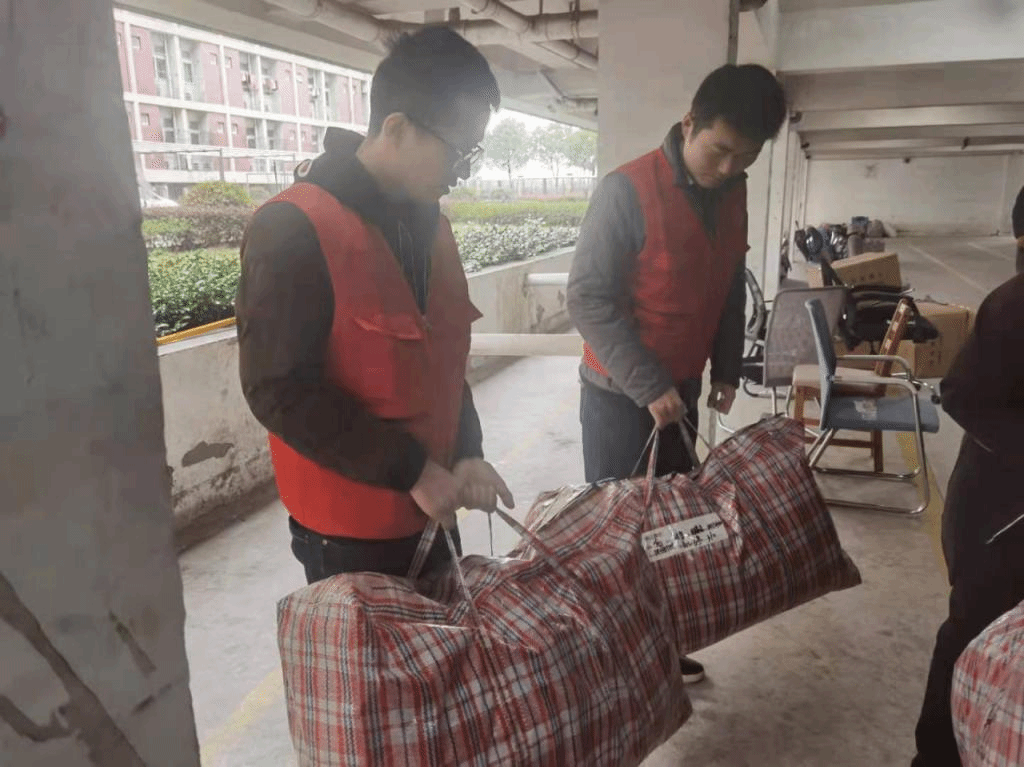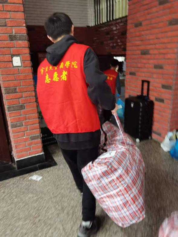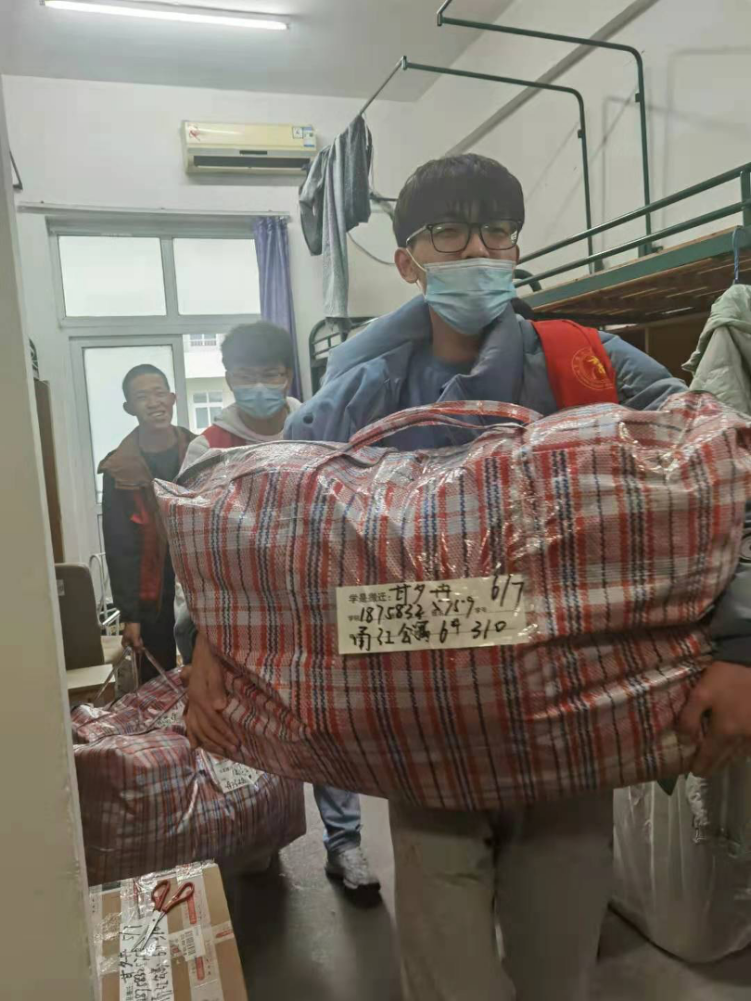 20余名学生志愿者积极参与到寝室搬迁工作中。