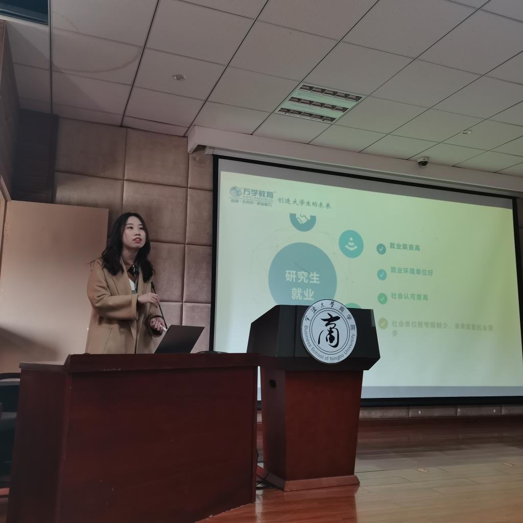 同学做好考研前期规划, 3月10日下午,学院2022考研全程规划指导专题讲座在11号楼109报告厅成功举办。本次讲座由海文考研胡善盼老师担任主讲,60余名学生参加。