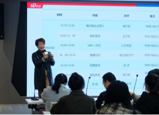 在海尔施公司欢迎仪式上,公司副总经理王子瑜女士发表了热情洋溢的欢迎辞,介绍了公司的经营理念和菠菜网站,并且耐心解答同学们的问题,并提到“危机危机,有危才有机”,令同学们受益匪浅。
