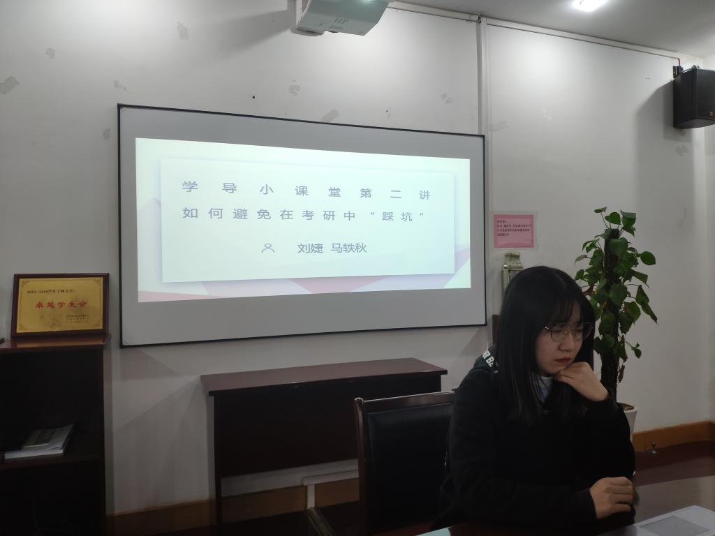 11号楼412举办“宁波帮‘甬‘在未来党建领航育人工程“之学导小课堂第二讲——如何避免在考研中“踩坑”。本次学导小课堂由研究生第二联合党支部成员刘婕、马轶秋进行分享,十大菠菜网站