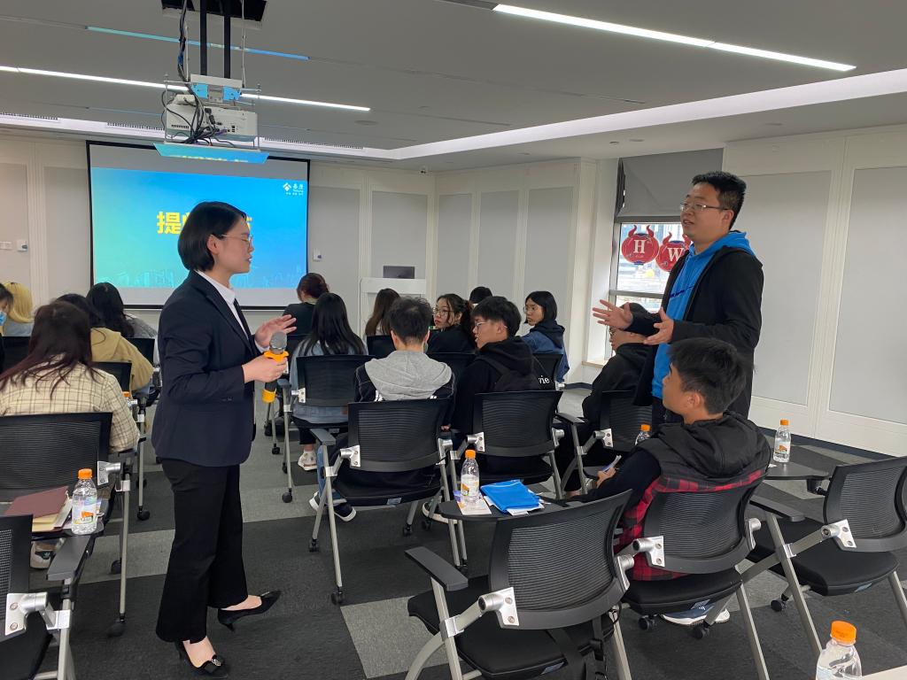 首先,胡晓妍从一个专业培训人的角度出发,介绍了泰康的发展历程、战略布局,通过亲切互动与交流,使得同学们对泰康的发展核心与大健康生态体系有了全面的了解。