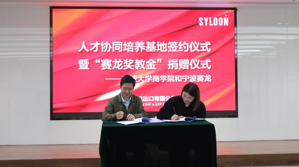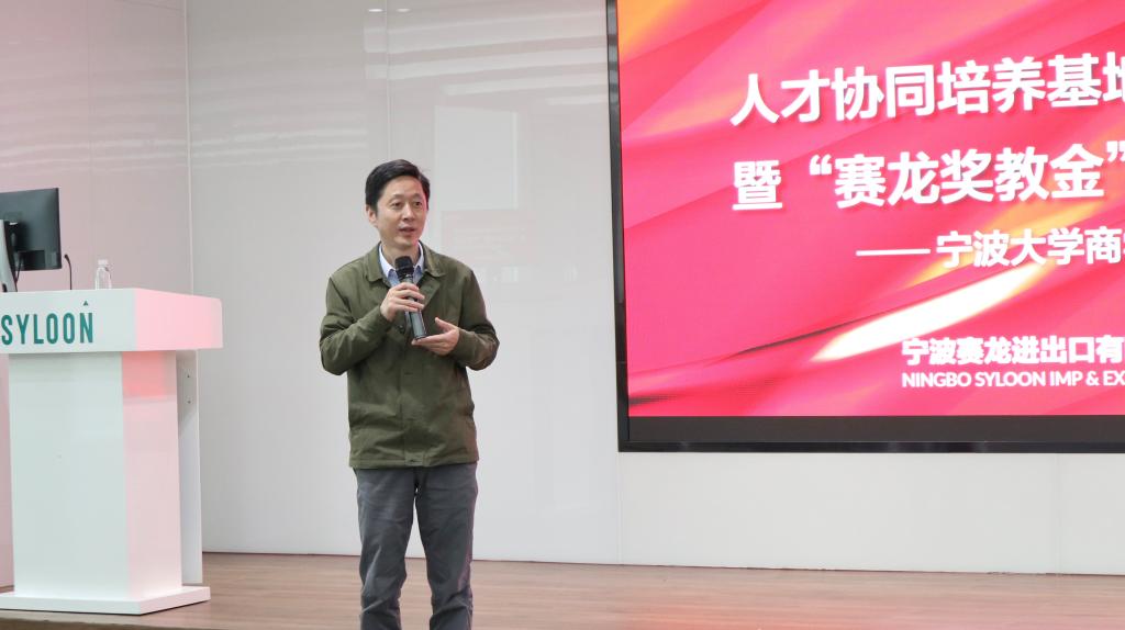 和宁波赛龙进出口有限公司的移动课堂签约仪式。仪式伊始,郑凌波介绍了行程安排并播放了两则短片,对宁波赛龙公司和第一期赛龙移动课堂进行了初步介绍。随后,陆甦颖就与十大菠菜网站
