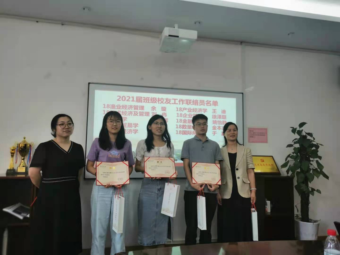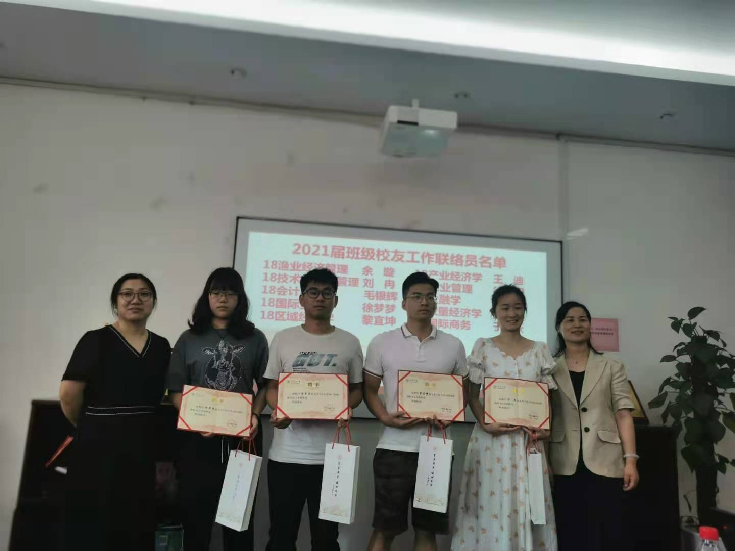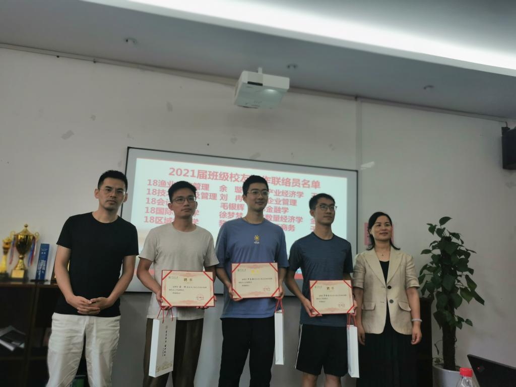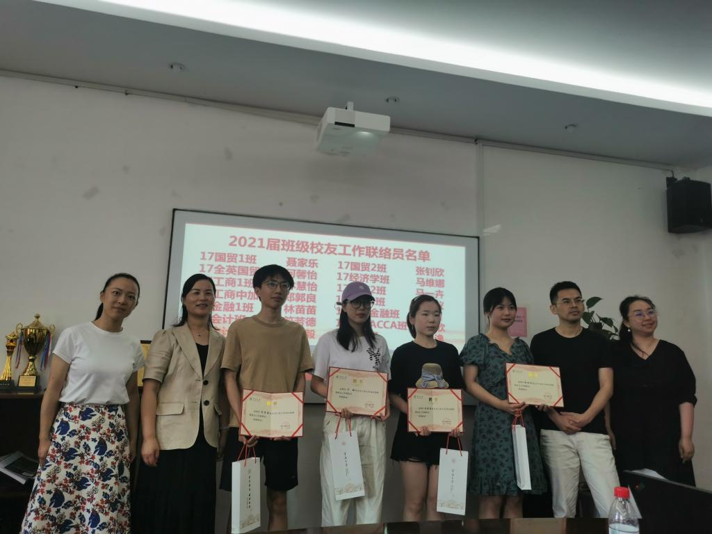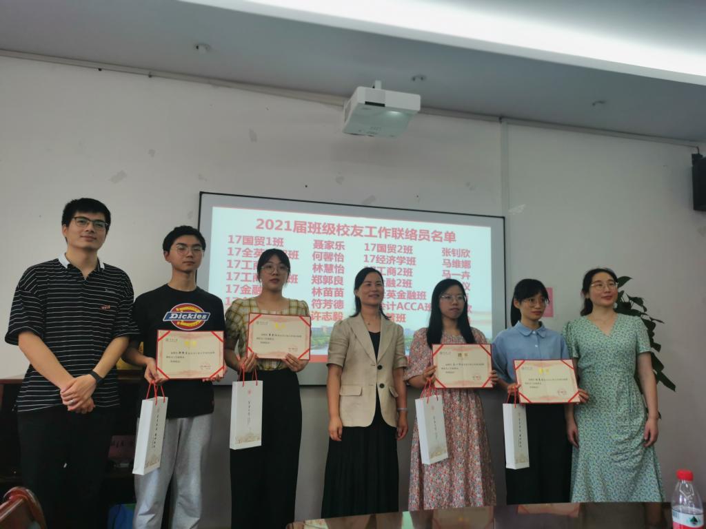 会议伊始,陈彬介绍了宁波大学班级校友工作联络员制度,强调了校友工作和各联络员的重要性。随后,韩雯琛宣读了我院2021届班级校友工作联络员名单,并与辅导员向2021届班级校友工作联络员颁发聘书及纪念礼品。接下来,班级校友工作联络员代表聂家乐上台发言,他感谢了母校以及老师们的培养,表达了对母校的依依不舍之情,同时强调了要发挥校友联络员的桥梁纽带作用,真正践行“一生一世一商人”的格言。