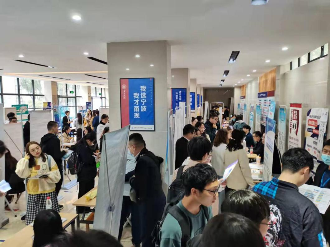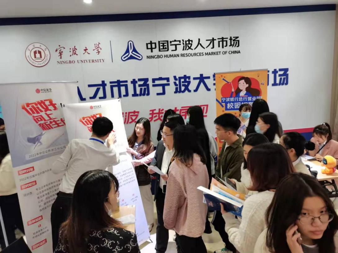 联合中国宁波人才市场在宁波大学就业市场为2022届毕业生举办了一场经管商贸类行业专场双选会。