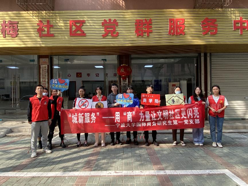 国际商务专业研究生第一党支部在孔浦社区开展了“城新服务”——用“商”力量让文明社区更闪亮活动。