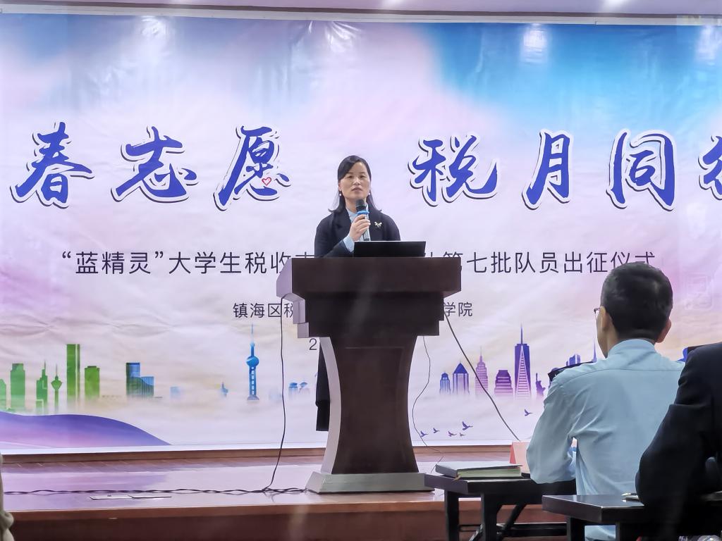 “蓝精灵”大学生税收志愿服务大队第七批队员出征仪式在国家税务总局宁波市镇海区税务局举行。宁波市税务局纳税服务处副处长董如峰、镇海区税务局副局长屠晓军、镇海区税务局纳税服务科科长方锐和十大菠菜网站