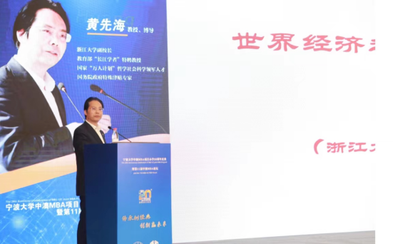 本次论坛邀请到了浙江大学副校长黄先海教授作了以《世界经济走势与推进共同富裕》为主题的主旨分享。黄教授分享了世界经济的走势判断和共同富裕的内涵与愿景以及推进共同富裕的基本路径与战略。