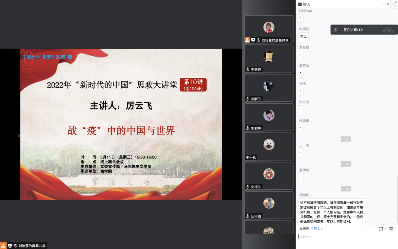 270名同学参与。本次课主题为“战‘疫’中的中国与世界”,由马克思主义菠菜网站