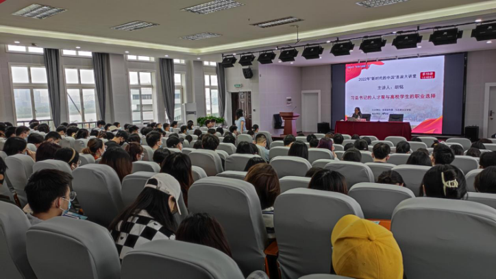 胡老师从习近平总书记的人才观、大学生职业选择的影响因素、大学生如何选择职业三部分内容分享本次讲座。胡老师首先抛问“大家是否都有明确的职业目标”来引入话题。她强调,成为创新型、复合型、应用型人才,服务经济社会发展应是大学生不断努力的目标,在大学生选择职业时,行业趋势、人群情况、地域优势等都是不可忽视的因素。当代大学生的求职之路应从认识自己开始,择己所爱,了解自己;择己所能,发现自己;择世所需,提升自己。最后,胡老师用习近平总书记寄语与同学们共勉,“广大青年要肩负历史使命,坚定前进信念,立大志,明大德,成大才,担大任,努力成为堪当民族复兴重任的时代新人,让青春在为祖国,为民族,为人民,为人类的不懈奋斗中绽放绚丽之花。”置身于人才辈出的时代浪潮中,将职业生涯与国家需要结合起来,才会更加熠熠生辉。