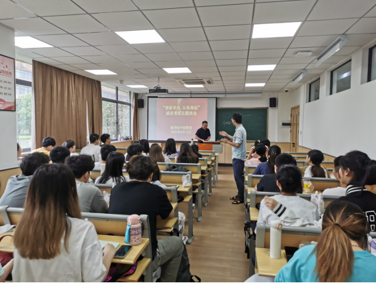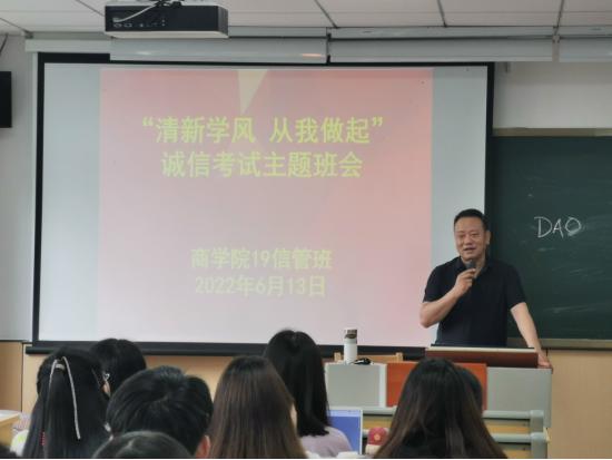19级信管班全体学生在包氏教学楼6号楼106室举办诚信考试主题班会,会议由班长卢静芝主持,由副院长陈涛、班主任王昕天主讲。此次主题班会的举办,目的在于关心了解学生现状,同时积极树立诚实考试、诚信做人的作风,增强学生诚信意识,彰显新时代大学生良好的思想道德精神风貌。