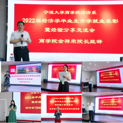 院长金祥荣教授受邀参加,2022届经济学班主任余杨教授、辅导员章舒怡、经济系部分教师、经济学专业毕业生和部分在读的19级和20级本科生一同参会交流。