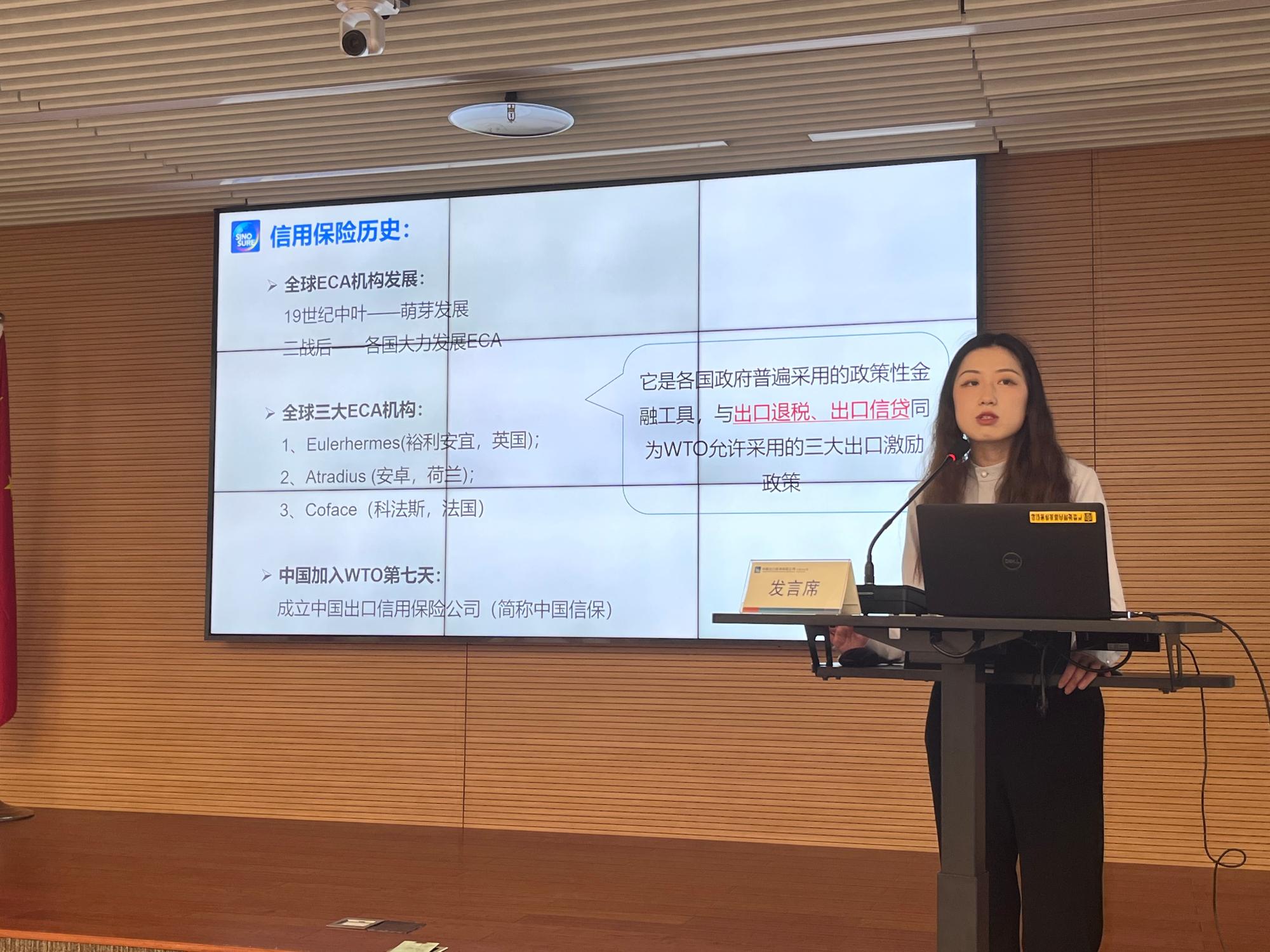 教师团队、专业、学生的基本情况,同时提议在跨境电商专业的微专业人才协同培养上可以进行深入的合作,得到了企业方的认可与支持;最后2015级金融专业校友王诗璎为大家全面介绍了中国出口信用保险宁波分公司的企业发展历程与菠菜网站。