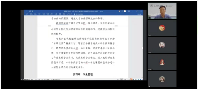 会议开始,朱院长首先向大家介绍了商创班的创建初衷,强调商创班是宁波大学新文科建设和商科拔尖创新人才培养改革的一个重大举措,以学术为导向,采用创新化培养模式和一系列创新举措,旨在培养志向高远、德才兼备、具有深厚家国情怀、宽广全球视野、宽厚人文底蕴、科学思辨方法、突出创新能力,堪当民族复兴大任的高素质研究型人才。商创班秉承宁波大学“把成才的选择权交给学生”的办学理念,在前三年学习阶段不限(分)专业,并结合全程专业导师制培养。每个学生都可以在优秀专业导师指导下量身定制个性化培养方案,根据个人发展规划自主自由选择专业和课程学习,旨在确立以学生为中心的学习范式,激发学习主动性,充分发掘潜力,提升学习能力。同时,商创班在人才培养上强调学科专业交叉融合,实行“厚基础、宽口径、强交叉、重实践、促创新”五措并举,培养高层次复合型人才。随后,朱院长对商创班具体政策及选拔面试流程做了详细介绍和说明。