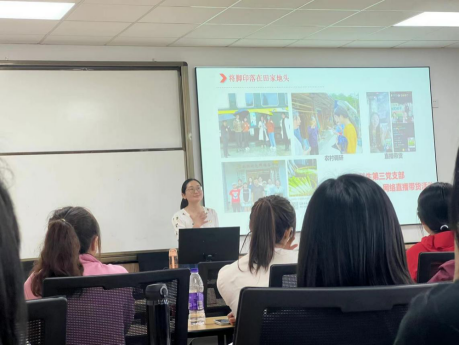 负责学生党建的周双双老师主讲。46名2022级本科生新生聆听。