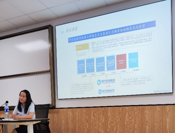 首先,张萍经理向同学们介绍了申万宏源证券公司的现状与未来的发展方向,以及营业部的目前业务。其次,公司优秀员工任凡向同学们分享了他从业11年以来的工作心得。从职场小白到公司骨干,任凡前辈从多年实践中总结出“纸上得来终觉浅,绝知此事要躬行”的经验,让同学们深受启发。该公司营业部负责人张玮和同学们进行了本次校招岗位信息的交流,为在场的同学们解答了疑惑。