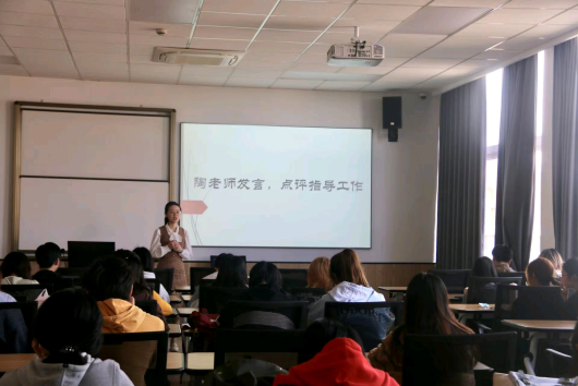 大会伊始,陶含怡首先对工作室前任主任与部长们的到来表示欢迎,她充分肯定了半学期以来工作室的工作成果,对风华工作室的成员们给予了鼓励与表扬,提到了在工作室各部门的共同努力下,风华工作室得到了非常大的进步,成员们尽职尽责、辛勤工作,使风华在过去的半学期里越来越好。与之同时,陶含怡也提出,风华工作室使得不同年级、专业的同学有了相遇的机会,成员间可以在不同的方面进行交流与学习,可以接触到更多的朋友,不断拓展自己的视野,为同学们提升自我提供了一个宝贵的平台。除此之外,她也希望各部门能够多多开展部门特色活动,展现风华工作室独特的部门风采。另外,风华工作室需要持续保持高效率、高质量的工作风格,同时拓展工作业务,打造一个独一无二的风华工作室。最后,她表示,相信在全体风华成员的共同努力下,风华工作室一定会蒸蒸日上。