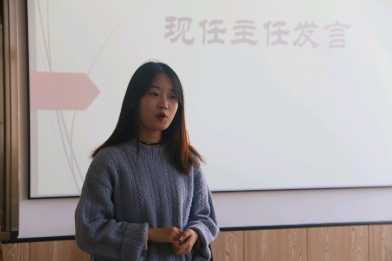 而后,风华工作室的各位现任部长和主任孙佳怡、王嘉怡、严越云上台发言。各部长总结了半个学期以来各部门的工作,对干事们的辛勤付出表示了感谢并给予了鼓励,回顾了自己在风华的经历,总结了遇到的问题,分享了自己关于风华美好的回忆,同时也对部门未来的发展方向提出了自己的见解。希望各部门能够加强沟通,多加交流,齐心协力,共同奋斗,努力建设更好的风华工作室。