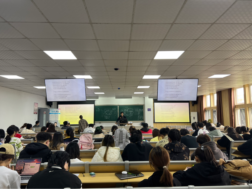 第二十三期业余团校理论课程第二讲“榜样的力量”在8号教学楼101教室顺利举行,讲座主题为“一名文理兼修多面手的成长之路”。分团委办公室干部程熠榕主持会议,宁波大学22届研究生支教团团长郑哲担任主讲。