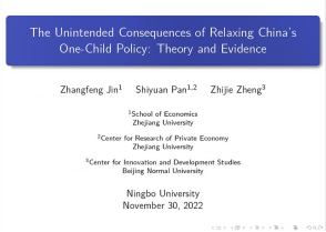 潘士远教授给大家介绍了自己的工作论文,阐述放开“一孩政策”,允许生育二孩的政策对我国生育率的影响。潘教授主要通过两个视角阐述二孩政策对生育率的影响:二孩政策会使得已有一个孩子的家庭生育第二个孩子的概率显著提高,以此提高生育率;同时,二孩政策会通过增加抚养成本,抑制未生育孩子家庭生育的欲望。即在集约边际上,放开“一孩政策”确实显著提高了生育意愿,但在广延边际上,放开“一孩政策”反而使得剩余第一胎的概率出现了下降。