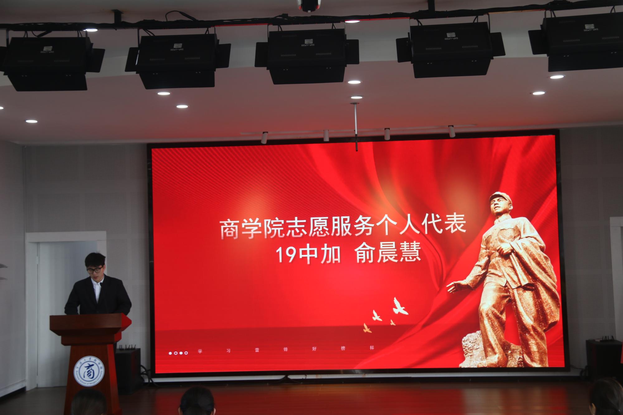 优秀志愿者团队以“我们这样学雷锋”为主题,分享了目前在开展的助农扶农、税收志愿服务、防诈志愿服务,志愿者团队的主讲人们欢迎同学们加入志愿团队,一起进社区、进校园、进企业、进乡村,用青春志愿行动为社会主义建设贡献力量。来自本科生第二党支部的俞晨慧则分享了自己大学四年373.5个小时的各种志愿服务经历,在讲到自己参加全运会、核酸检测志愿者的经历时,他说志愿服务充满了挑战和辛苦,但收获了自信和成长,他鼓舞在场的同学们:“加入志愿者服务队伍,用向上的力量和火红的初心、注满感恩,服务人民,在新时代新征程的道路上跃动青年积极向上的时代脉搏。”
