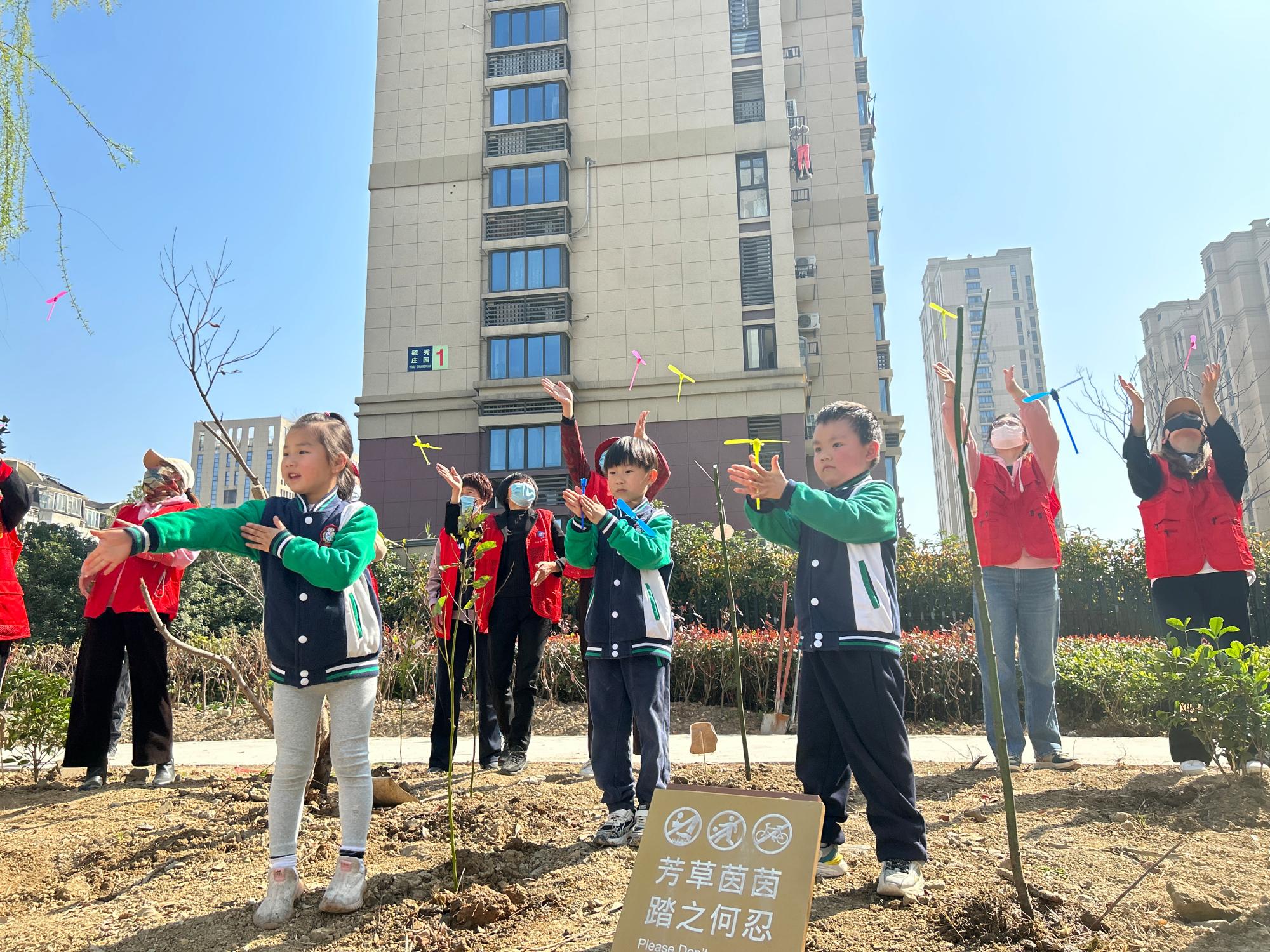 会计专硕研究生党支部成员和社区党员、悦士庭幼儿园老师和小朋友分组植树,活动现场,大家热情高涨,挥锹铲土、挖坑栽苗、扶苗填土、培土围堰。大家干劲十足,认真细致地栽种好每一株树苗。“学习防诈骗知识,守护自己的财产安全,不让诈骗分子有机可乘,同样也是守住了自己家里的‘金山银山’。”大家将防诈标语宣传牌挂在了小树苗上,希望在祖国土地上种下绿色的同时,也把防诈、反诈知识“植”入人们的心中。活动的最后,大家一起放飞竹蜻蜓,寄托自己的美好愿望。