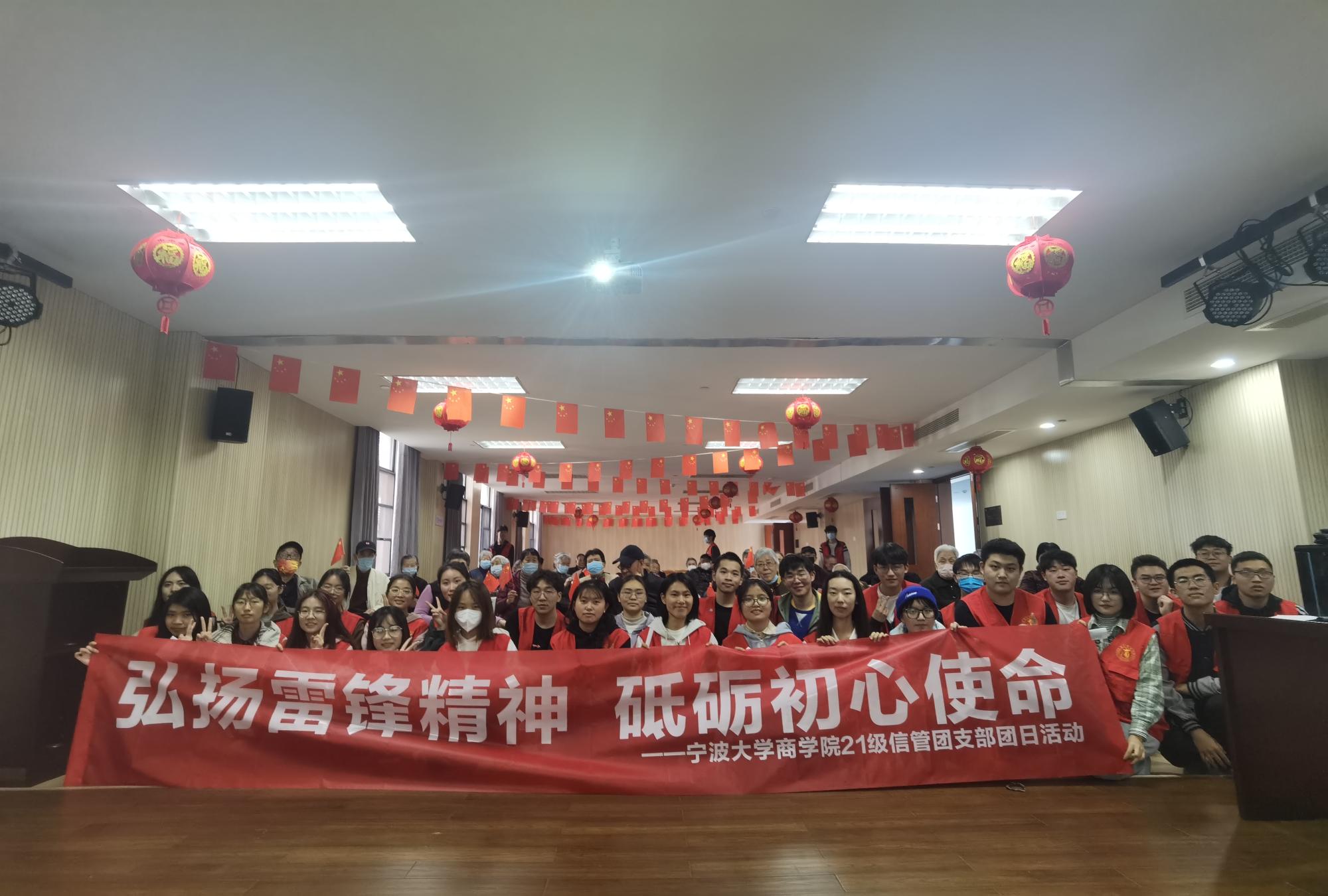 2021级信息管理与信息系统班团支部在宁波国家高新区颐养院开展以“弘扬雷锋精神,砥砺初心使命”为主题的团日活动。