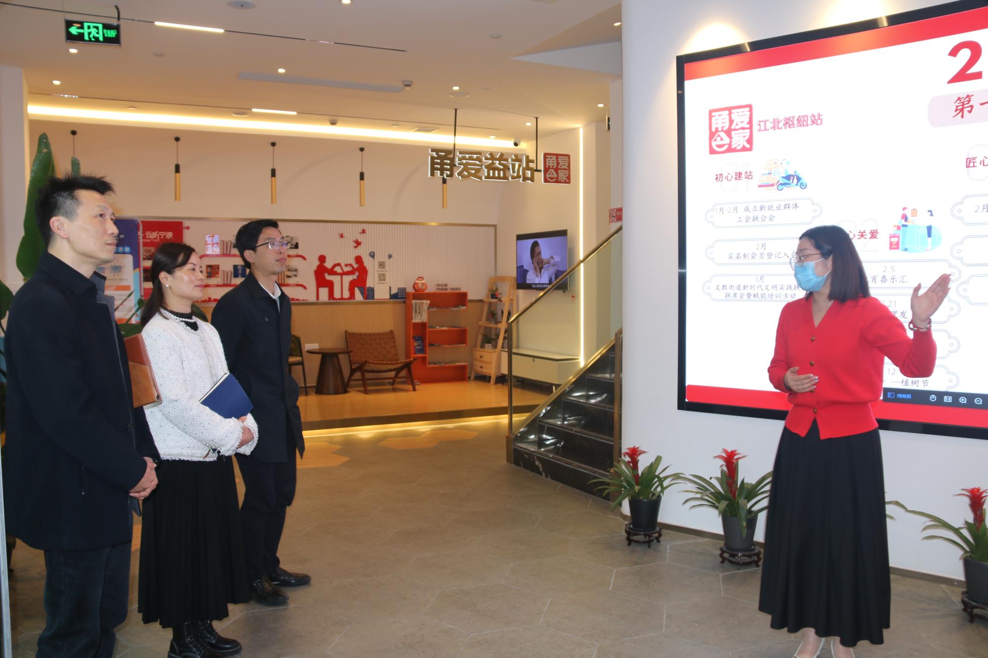 一行来到文教街道北岸6C联盟,调研片区型现代社区党建工作,详细了解当地集结党建、社区、商务中心、商业中心、文化中心和共同体力量,打造共建、共享、共融的新型城市基层党建联建阵地;随后来到甬爱E家文教枢纽站,调研新就业群体党建工作,了解政府和爱心组织共同为新就业群体搭建便民服务平台;之后来到第一批创建的未来社区——大闸社区调研未来社区创建过程和成果,大闸社区书记为我们详细介绍了大闸社区利用水资源、音乐和教育资源打造“有声有色”创建理念,塑造“红色心、书墨香、健康绿和活力橙”四色核心场景。