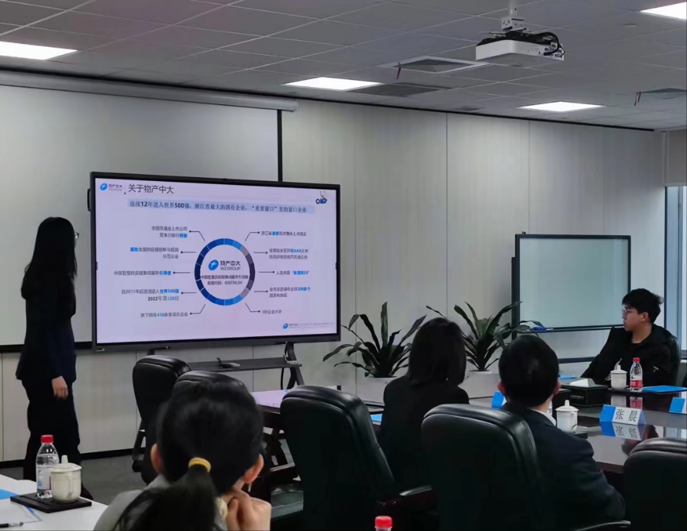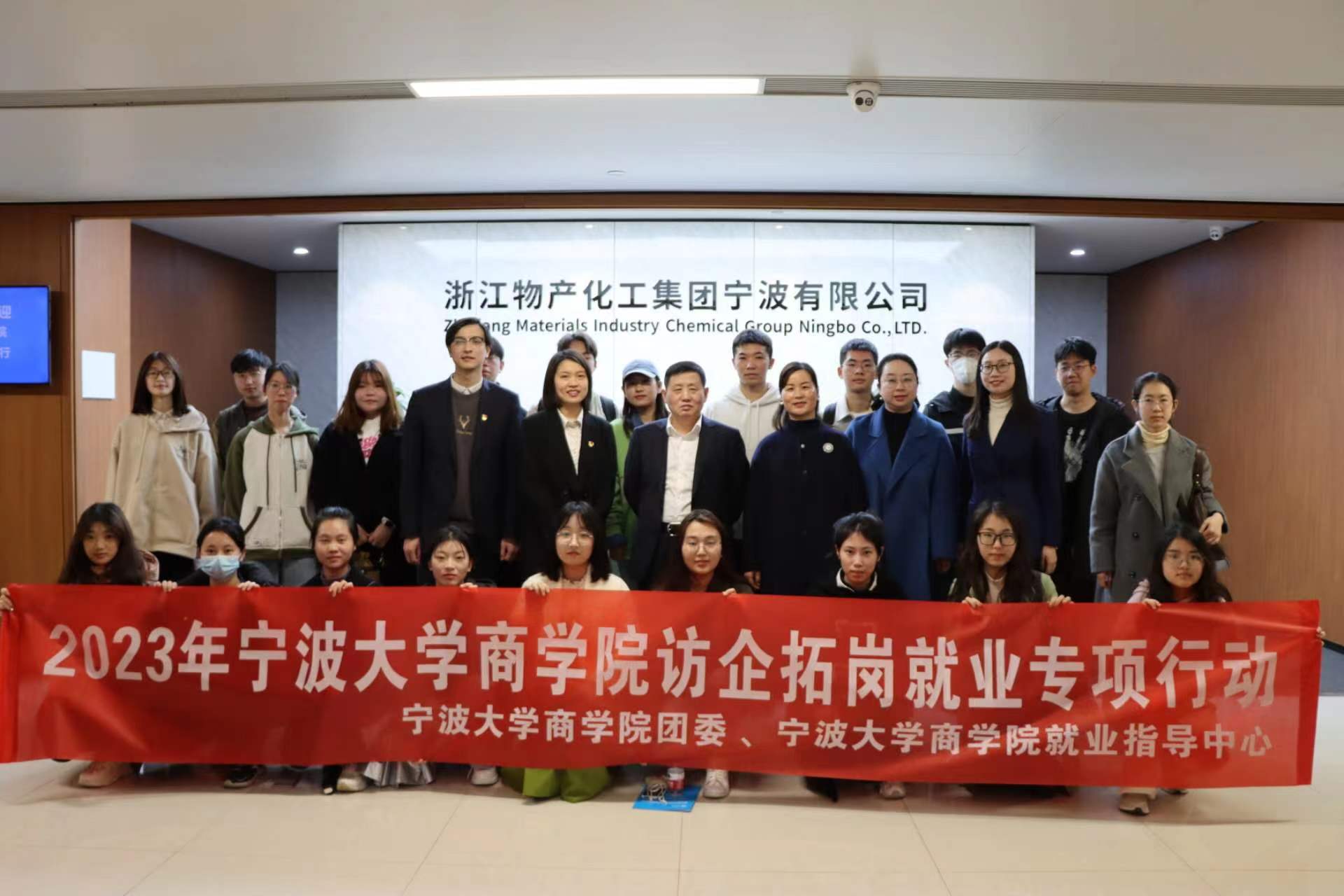 院长金祥荣、党委副书记韩雯琛、就业辅导员孙健维及21名学生代表走访浙江物产化工集团宁波有限公司,受到了董事长周剑凌、战略发展部兼人力资源部部门经理张晨、人力资源部部门副经理王鲁婧、资金部部门经理助理富佳能校友的热情接待。