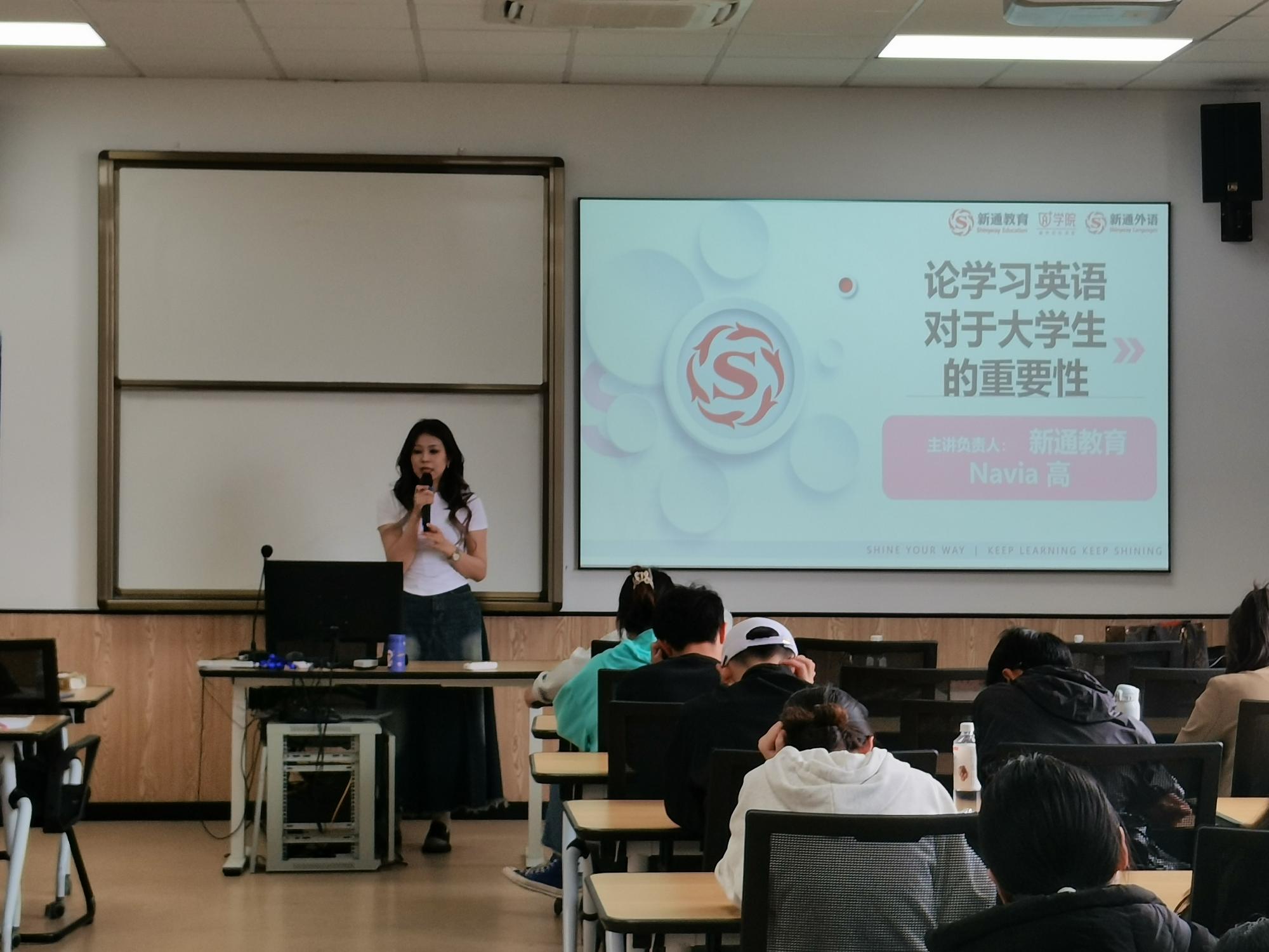 506教室成功举办。讲座以如何写好一份个人简历、提升自身履历为主题,邀请了有丰富生涯规划经验的新通教育机构专业升学指导规划师王睿和高洁主讲,本院共有60位同学参与。