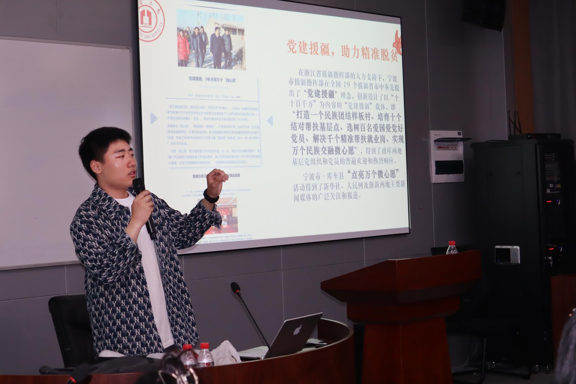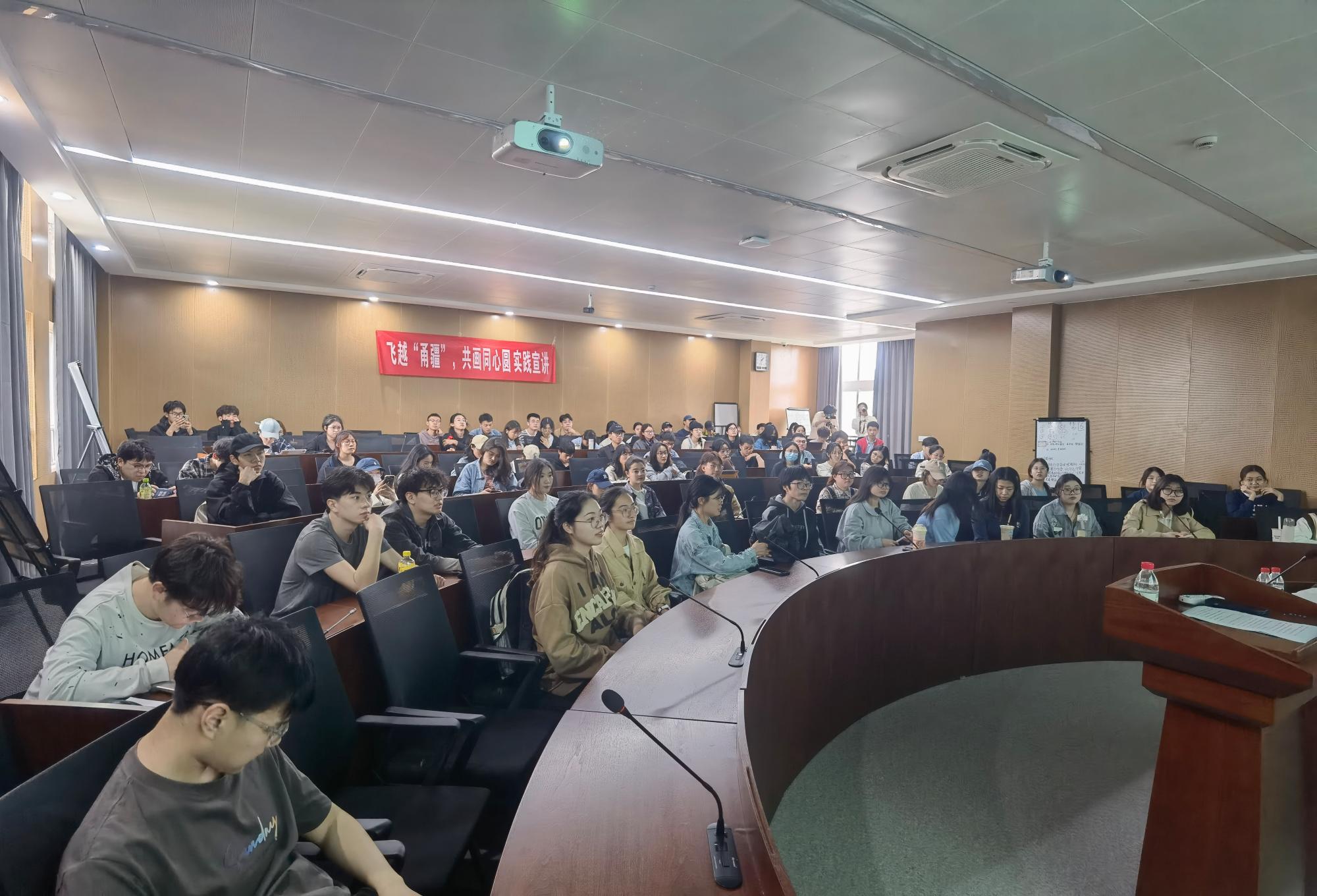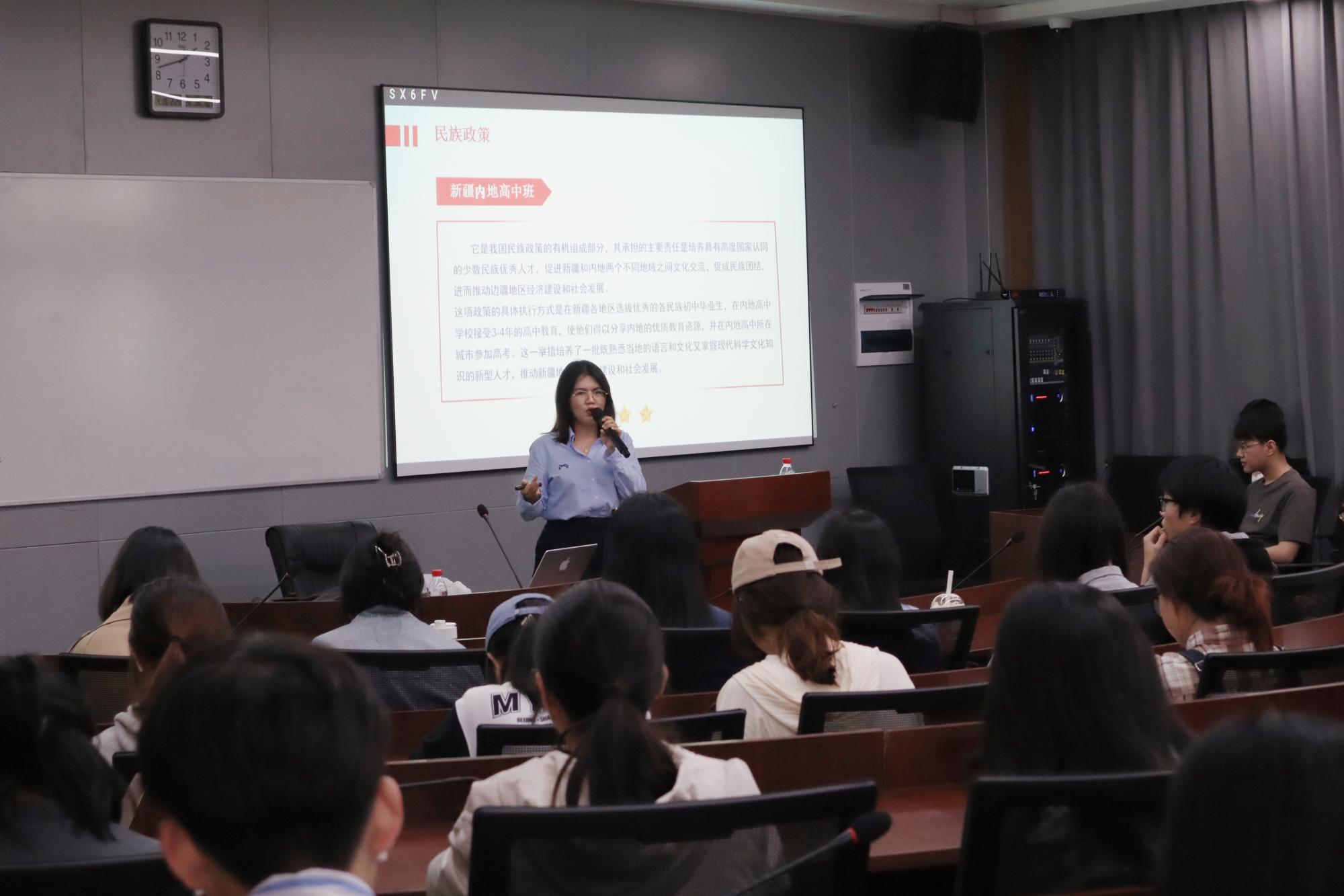 525报告厅成功举办。讲座由宁波大学“飞越”甬疆实践宣讲团承担,结合生动的援疆事迹,带领同学们走进不一样的新疆,领悟民族团结之魅力,共有百余人参加讲座。