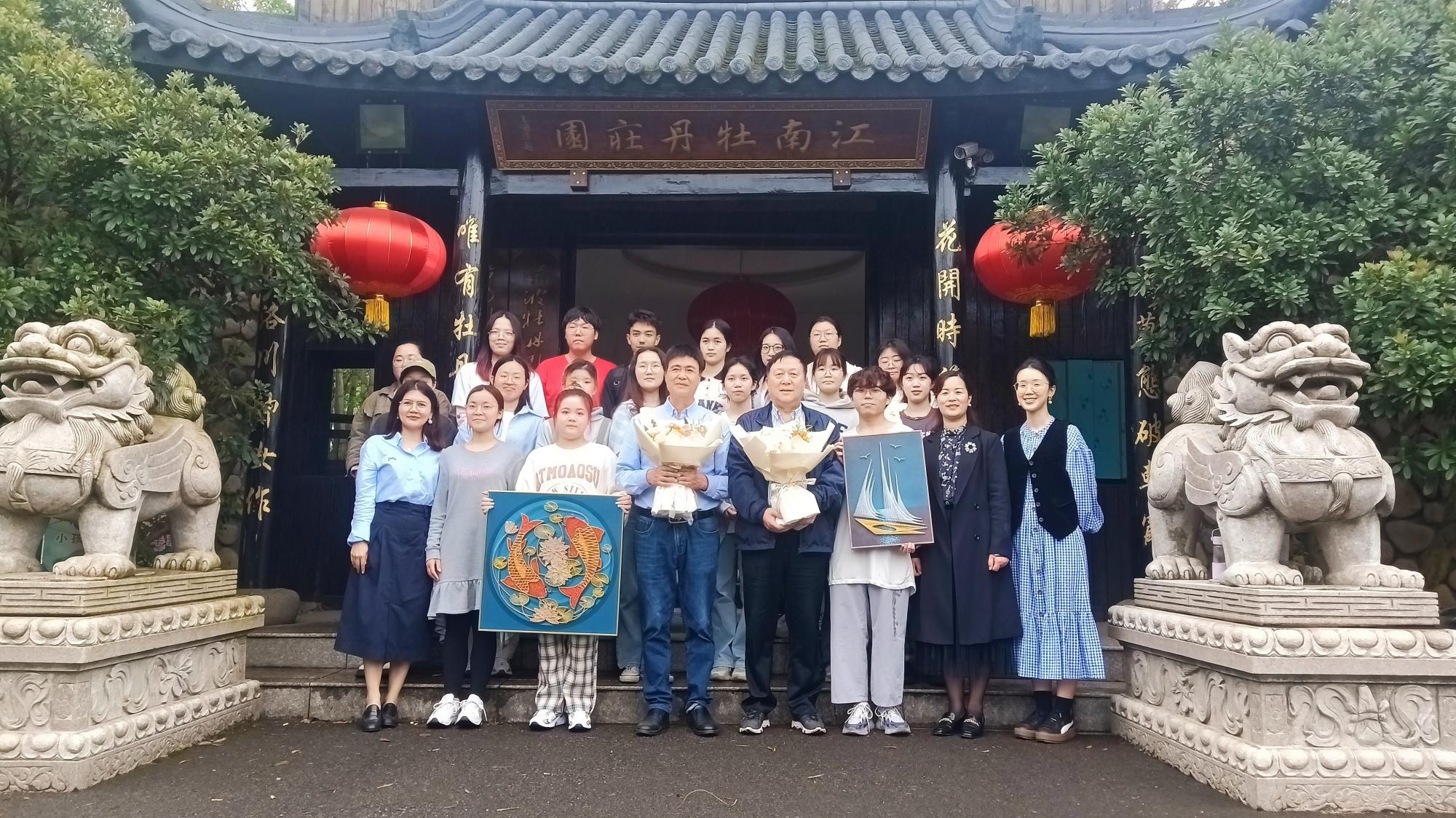老师同学一起在北仑区牡丹园合影留念。