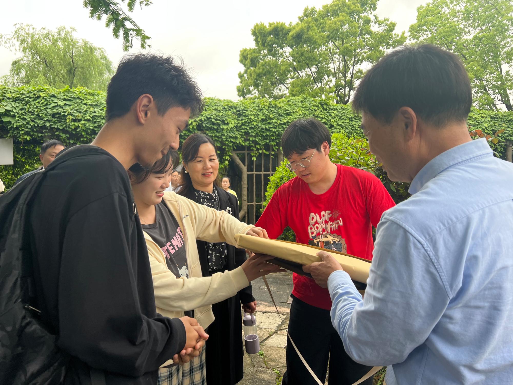 二十余名学生赴北仑区拜访“恒达奖助学金”和“宏达奖助学金”捐赠者贺行平和陆汉幸董事长,并参观了宁波北仑区牡丹园,受到了贺行平和陆汉幸董事长的热情接待。