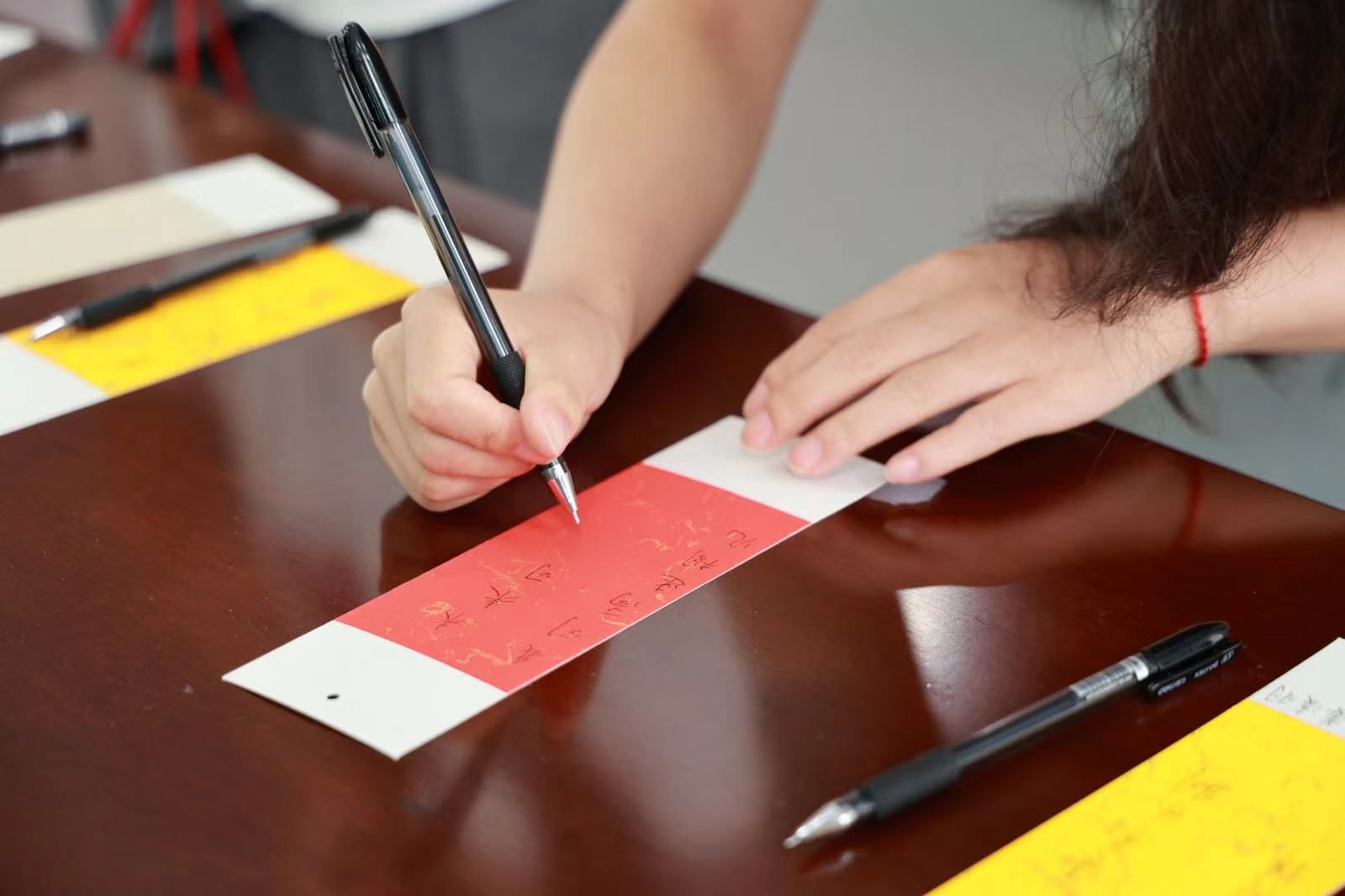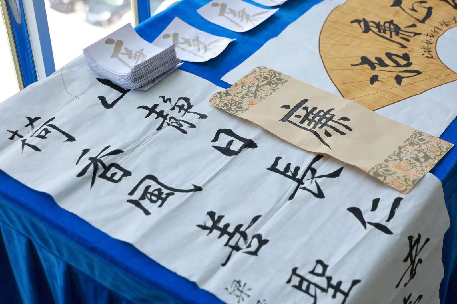 妙笔生“廉”,同学们用毛笔蘸满墨汁写下廉洁诗句、名言警局和廉洁感悟,将作品挂在展示区;