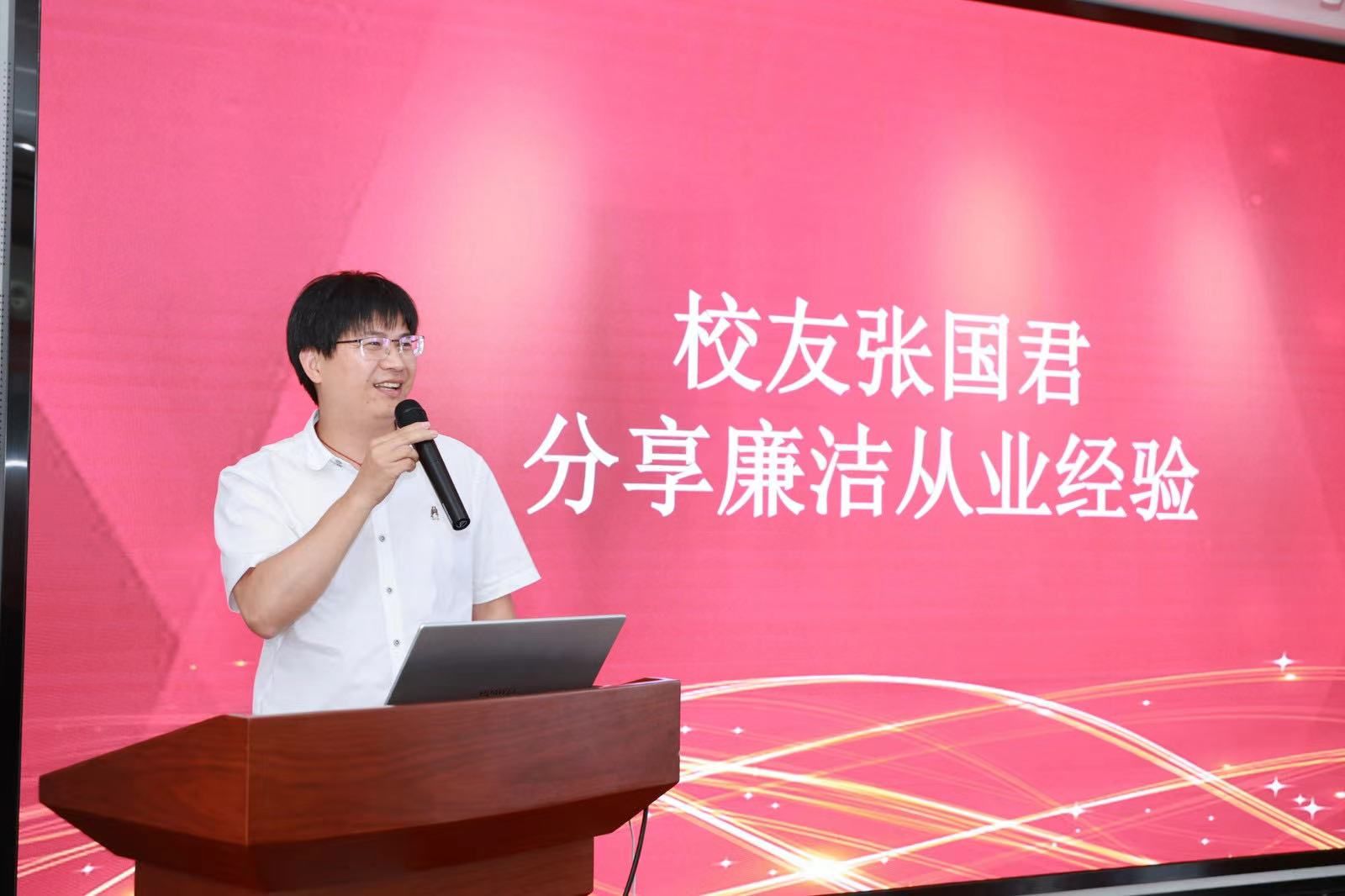 1997级校友张国君分享了自身22年的就业创业经历,勉励学弟学妹清清白白做人、堂堂正正做事,要有“长期主义”智慧,学会取舍。
