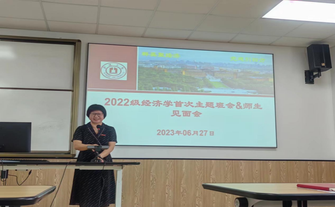 314教室举行。本次会议由2022级经济学班主任黄晖副教授主持,经济系主任徐群芳教授、教学系主任闭明雄副教授、专业教师靳来群、施晟和于冰副教授以及辅导员章舒怡老师出席会议并讲话。