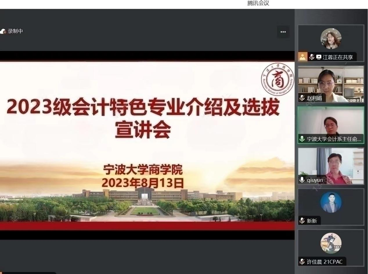 会计系陆续开展了会计学(CPA Canada)特色方向班的宣传招生工作。同时,根据《2023级会计学(CPA Canada)特色方向班选拔录取办法》文件精神和招生工作安排,于8月13日顺利召开了2023级会计特色专业介绍及选拔的线上宣讲会。