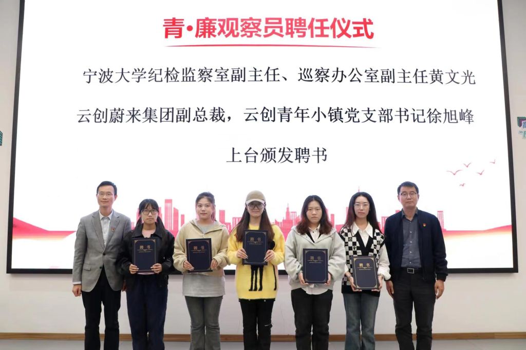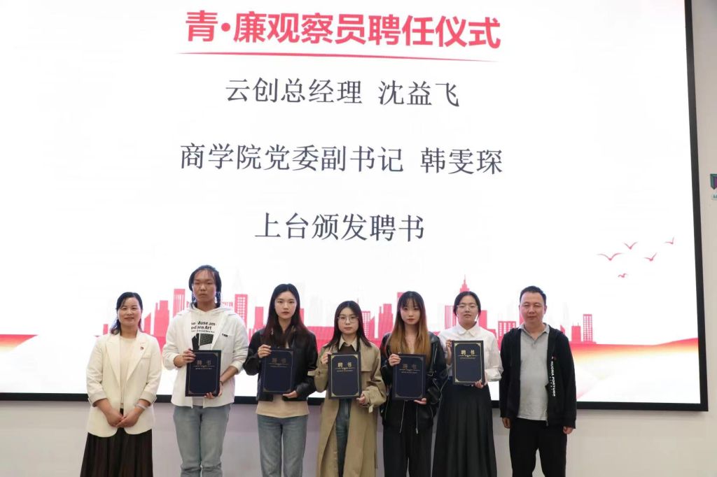 11月8日,“青·廉观察员”聘任仪式在江北云创小镇路演大厅隆重举行。校纪检监察室副主任黄文光、院党委副书记韩雯琛、云创蔚来集团副总裁、云创青年小镇党支部书记徐旭峰、云创总经理沈益飞、云创项目总监周金凤出席并为十大菠菜网站